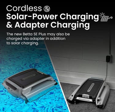 Betta SE Plus - Solar-Powered Robotic Pool Skimmer with 24/7 Continuous Cleaning Power, Dual Charging Options, Twin Salt Chlorine Tolerant Motors, and Shallow Water Safeguard